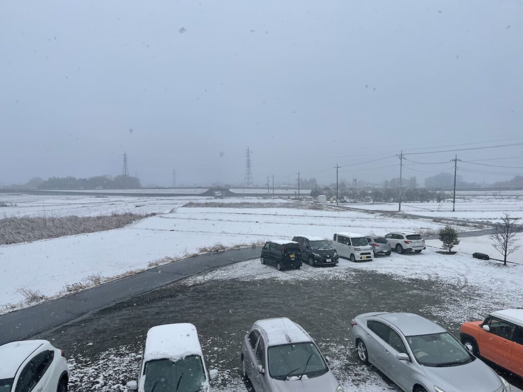時には雪世界になることも。利用者は四季の移りを見られます。季節の移り変わりを年中見られるので、利用者もよく外を見て、施設のスタッフとよく話をしています。