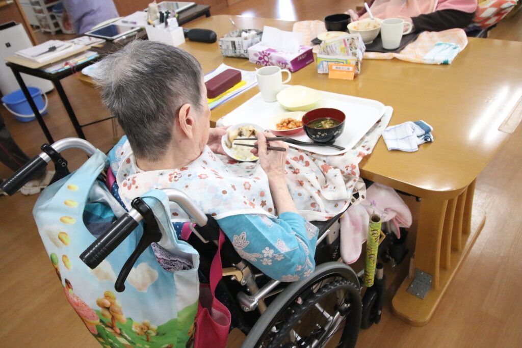 - デイのご飯は、近くの農家から仕入れているご飯、味噌汁、おかずで4〜5点用意しています。