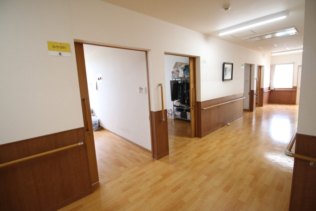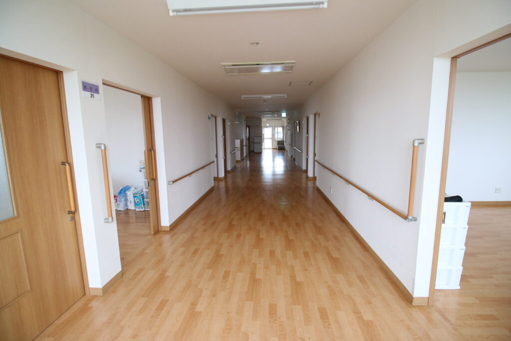 施設の中です。1階の廊下あたり、2階の廊下を臨んだところにあります。