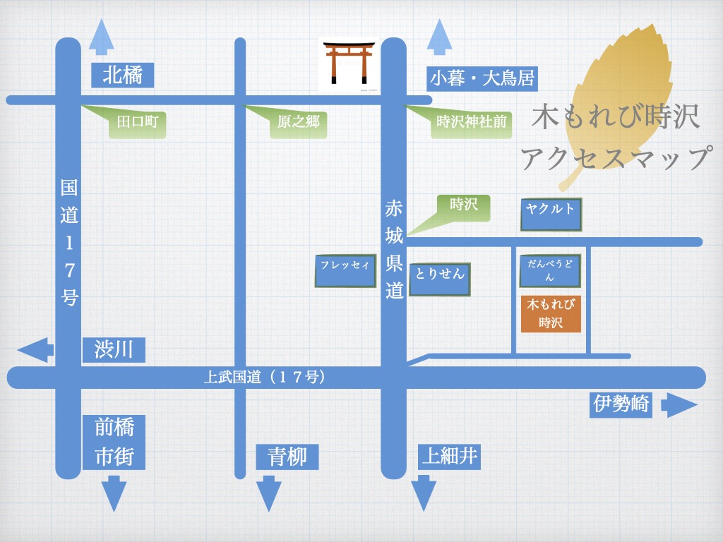 木もれび時沢へ訪ねるときはこのアクセスマップでご確認ください。